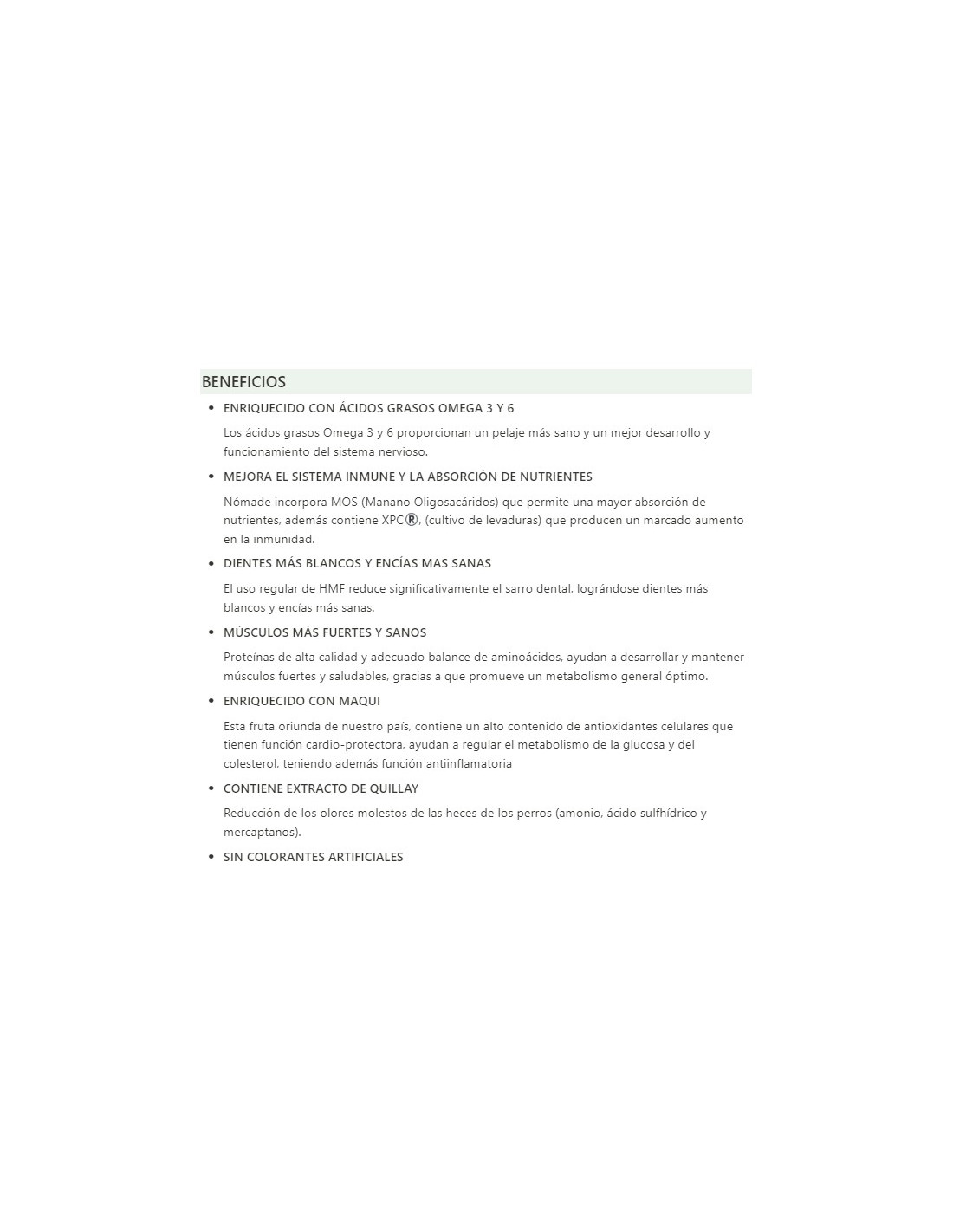 Nómade incorpora MOS (Manano Oligosacáridos) que permite una mayor absorción de nutrientes, además contiene XPC®, (cultivo de levaduras) que producen un marcado aumento en la inmunidad.