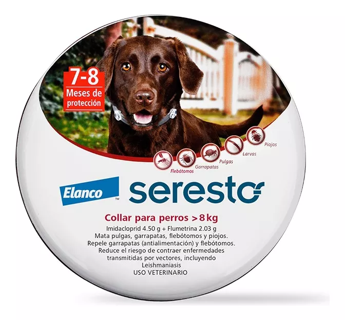 Seresto® es un collar antiparasitario innovador diseñado para perros y gatos, que ofrece una protección duradera contra pulgas, garrapatas, larvas de pulgas y piojos. Su formulación única proporciona hasta 8 meses de protección continua, equivalente a 8 aplicaciones de pipetas o comprimidos mensuales.