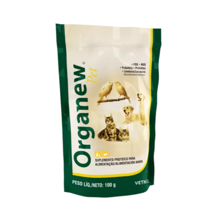 Organew 100GR reúne en su formulación vitaminas, aminoácidos, FOS, MOS y levaduras vivas. Esta perfecta combinación ayuda en el desarrollo de una microbiota intestinal sana, que proporciona una mejor digestibilidad de los alimentos y, consecuentemente, una mejor eficiencia alimentaria.