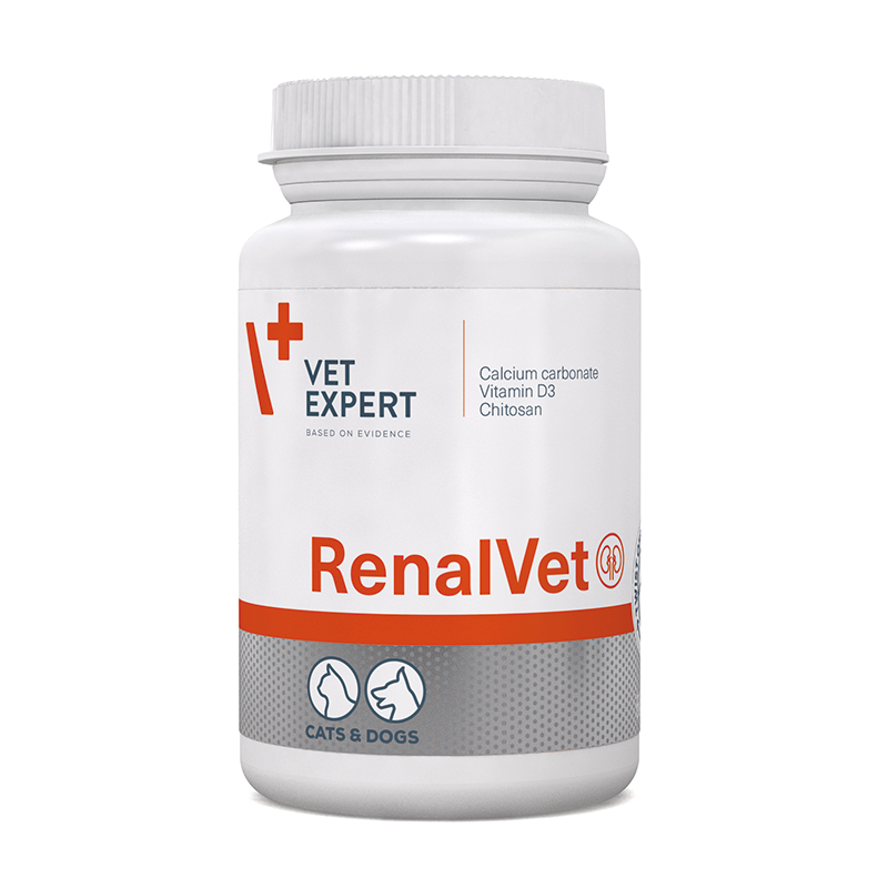 RenalVet es un suplemento dietético formulado nutrientes esenciales y quelantes de fósforo que ayudan a mantener la salud y el funcionamiento óptimo de los riñones de perros y gatos con enfermedades renales crónicas o agudas.