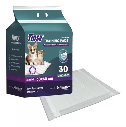 Sabanilla para mascotas Tipsy son la solución perfecta para el adiestramiento de tu mascota. Con superficie antideslizante y un núcleo de gel ultra absorbente, mantienen el área limpia e higiénica. Además, contienen un agente atrayente que neutraliza olores, facilitando el entrenamiento de tu perro.
